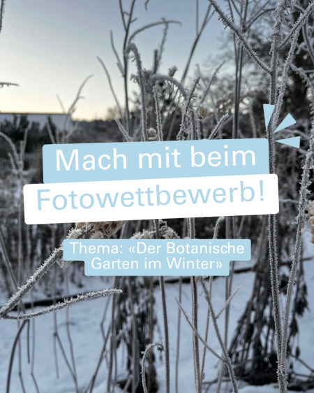 Poste dein Bild bis zum 28.02.2026 mit deiner schönsten winterlichen Impression aus dem Botanischen Garten St.Gallen. Markiere den @botanischergartensg neues Fenster und schick uns das Bild zusätzlich per DM. Nehme anschliessend an der Abstimmung in unserer Story teil und wähle dein Lieblingsbild.