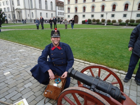 Das Kinderfest beginnt mit einem Knall bei der Falkenburg. Im Auftrag der Stadt kündigt Roland Uhler seit Jahrzehnten mit einer antiken Kanone das Kinderfest an.