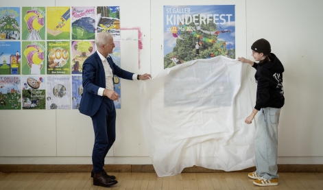 Am 20. März haben wir das neue Plakat des Kinderfests enthüllt. Verantwortlich für die Gestaltung waren Schülerinnen und Schüler der Talentschule Gestaltung. Benjamin Hanimann, Oberstufenlehrperson für Bildnerisches Gestalten an der Oberstufe Centrum und Koordinator der Talentschule, verantwortet das Ressort gemeinsam mit Céline Stadler, Fachlehrperson für Gestaltung.