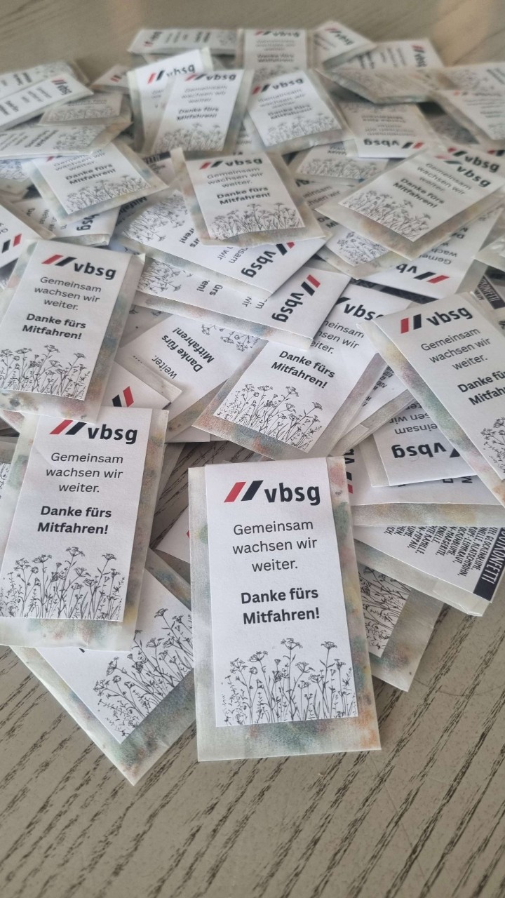 Die Geschäftsleitungsmitglieder waren kürzlich auf mehreren Touren im Liniennetz der VBSG unterwegs und überreichten den anwesenden Fahrgästen je ein Tütchen Saatgutkonfetti. Aus den Saatgutkonfetti werden Wildblumen – sie stehen für mehr Biodiversität und Nachhaltigkeit. Ein passendes Präsent, findet Daniel Zuberbühler, Unternehmensleiter VBSG: «Die VBSG stehen für Nachhaltigkeit. Wir erbringen 65 % unserer Fahrleistung elektrisch, wobei diese zu 100 % aus erneuerbarer Energie stammt. Und, wir verzeichneten im Jahr 2024 so viele Fahrgäste wie noch nie. 31.5 Millionen Fahrgäste – das ist ein Rekord! Dafür wollten wir uns bei unseren Fahrgästen mit einer speziellen Aktion bedanken. Es erreichten uns viele positive Rückmeldungen.»