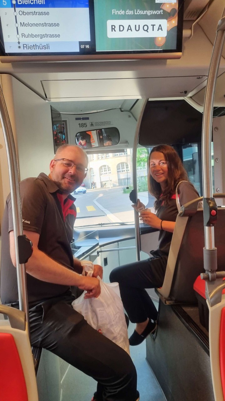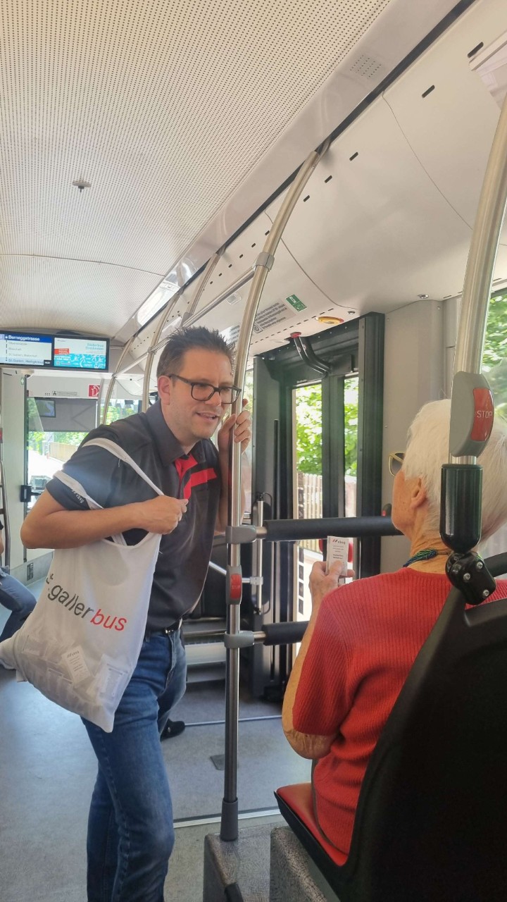 Mit einer speziellen Dankeschön-Aktion bedankten sich die Mitglieder der Geschäftsleitung der Verkehrsbetriebe St. Gallen für das Rekordergebnis von 31.5 Mio. Fahrgästen im Jahr 2024.