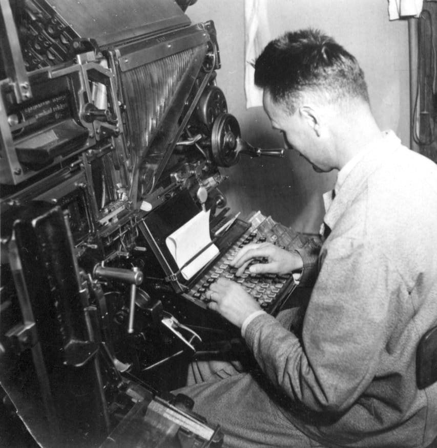 Heute kann man mit nur wenigen Klicks ein Foto, ein Text oder ein Video in Sekundenschnelle erstellen und mit der ganzen Welt teilen. Die rasante Beschleunigung der Informationswege ist ein Produkt des technischen Fortschrittes. In den Anfängen der Zeitungsproduktion lief dieser Fortschritt erst langsam an. Für die ersten Zeitungen musste noch jeder einzelne Buchstabe in der Form eines kleinen Bleikörpers, den man Letter nannte, von Hand an die passende Stelle gesetzt werden. Diese Letter wurden pro Zeile aneinandergereiht und in einem sogenannten Setzschiff zu einer Seite zusammengesetzt.